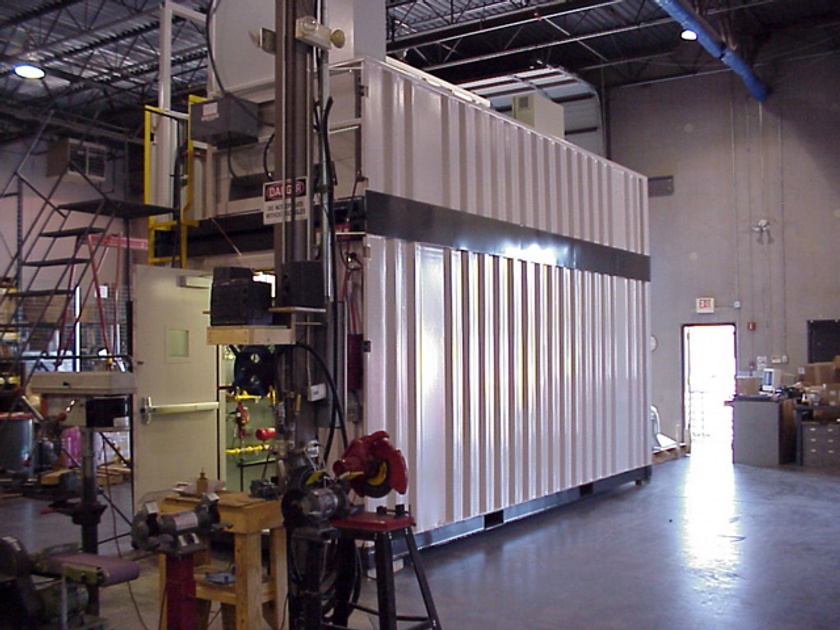 Two 20ft containers converted into a modular testing unit for an engineering company. One of the containers was cut in half horizontally for stacking on-site. The customer installed their equipment and turbo charger testing components on-site as well.