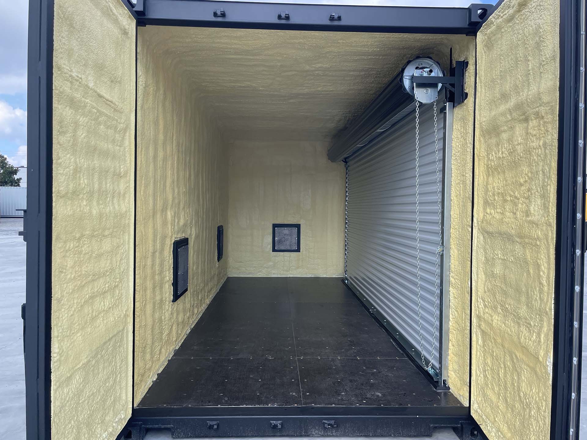 Spray entire interior of container with closed cell foam (2” average thickness)