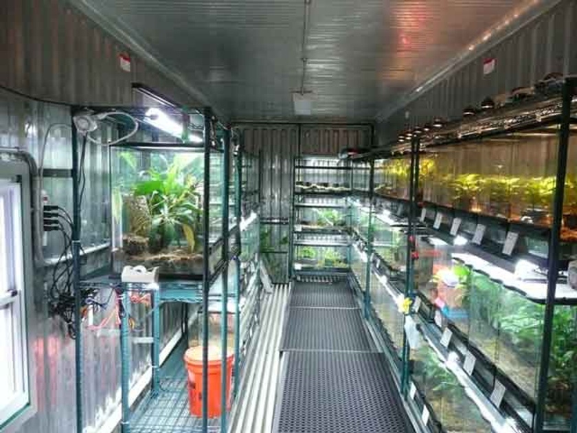 40ft Non-Working Refrigerated Container converted into a bio-secure amphibian research lab. This lab was created to study and cultivate amphibians (mainly frogs). It is called the Frog Pod (see article in Creative Uses section of site) and is displayed in Ontario.