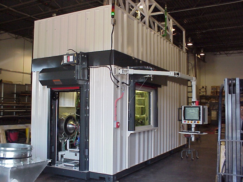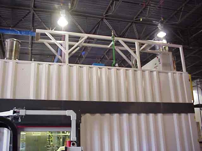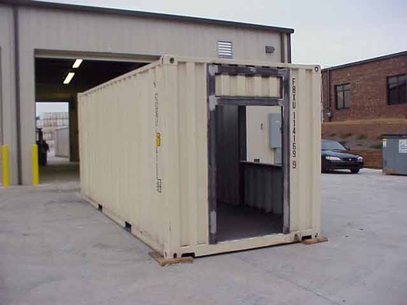 Two 20ft containers converted into a modular testing unit for an engineering company. One of the containers was cut in half horizontally for stacking on-site. The customer installed their equipment and turbo charger testing components on-site as well.