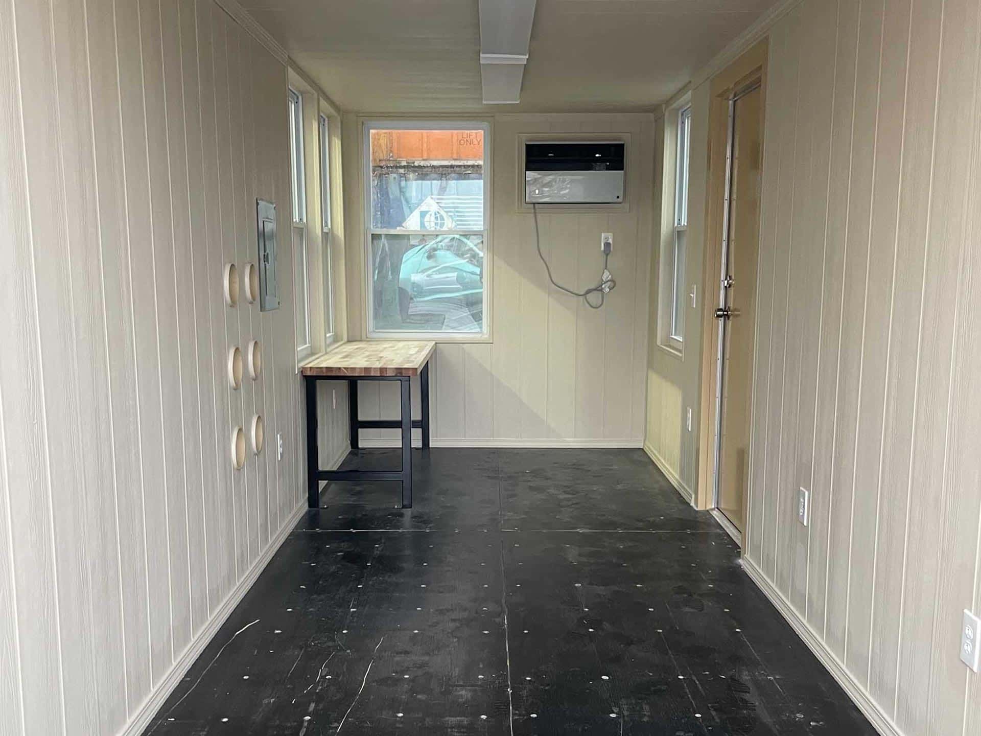 20ft Standard shipping container converted into textile plant operations unit. The container is outfitted with a personnel door, four large windows, the interior is finished, and electrical and HVAC is included. It’s also equipped with a 6’ workbench and the exterior has also been painted tan.
