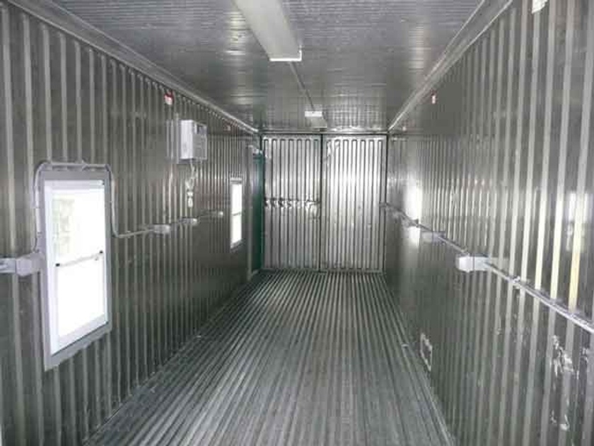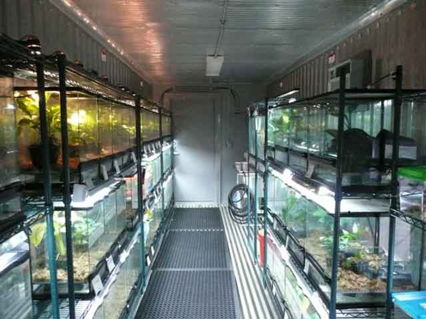 40ft Non-Working Refrigerated Container converted into a bio-secure amphibian research lab. This lab was created to study and cultivate amphibians (mainly frogs). It is called the Frog Pod (see article in Creative Uses section of site) and is displayed in Ontario.