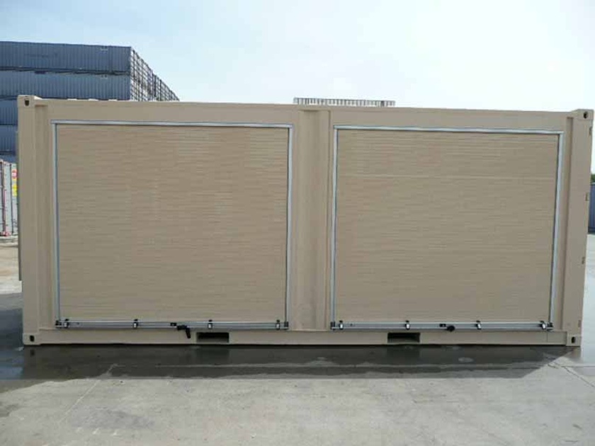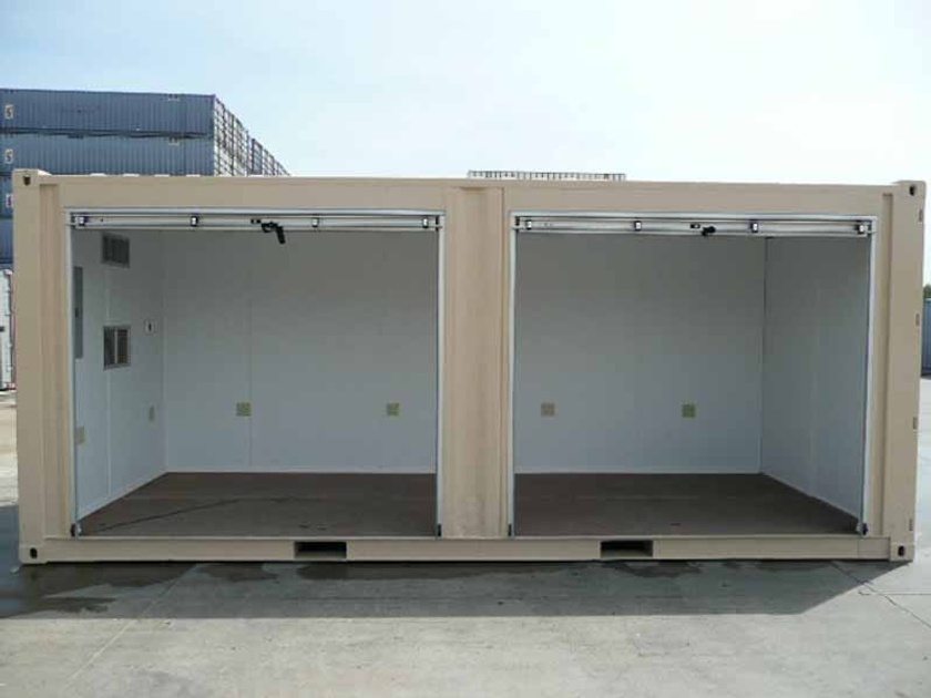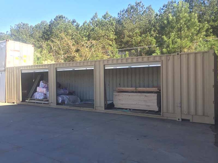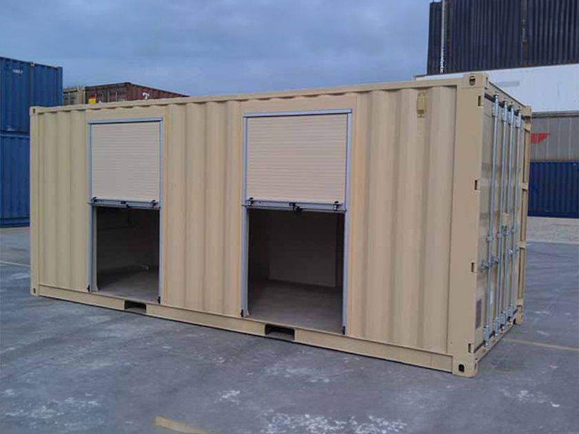 By adding multiple roll up doors, a shipping container can be transformed into a multi-purpose on-site mini storage unit. The mini storage containers can be converted into a variety of configurations. Roll up doors can be installed in the side walls, as well as the front (end opposite the existing doors). The roll up doors come in many different sizes and types. The interior of the mini storage container can also be insulated and heated/cooled. Lights can also be added to illuminate the interior.